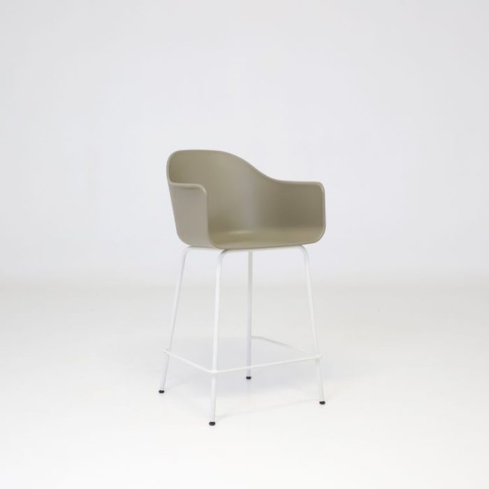Harbour från Audo Copenhagen är en stilren och tidlös designikon formgiven av Norm Architects. Denna stol har samma omslutande och bekväma sits som Harbour Dining Chair, med den karaktäristiska organiska formen och integrerade armstöden, men i en högre höjd anpassad för köksö, bardisk eller höga konferensbord.