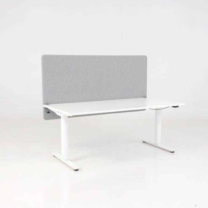 Bordsskärm 80/ 160 cm | BOOM INTERIOR | Den ljudabsorberande skärmen har en mjuk kärna som ger en av marknadens bästa akustiska egenskaper och skapar en behaglig arbetsmiljö med minskad ljudnivå. Klädd i ett ljust grått tyg med matchande grå detaljer såsom kantsöm och dragkedja, får skärmen ett enhetligt och sofistikerat uttryck. Finns i varianter för både lång- och kortsida av skrivbordet, vilket gör det enkelt att skapa flexibla och harmoniska kontorslösningar anpassade efter olika behov.
