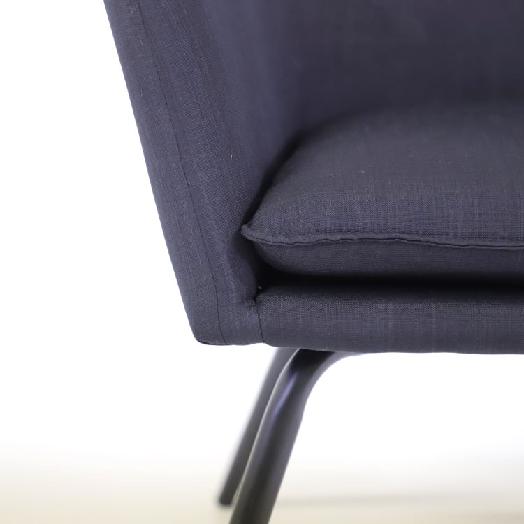 Med sitt generösa armstöd, mjuka sits och omslutande ryggstöd erbjuder Bankeryd en komfort som bjuder in till långa stunder av avkoppling, utan att kompromissa med stilen. Tygets djupt blåa ton tillsammans med det svarta metallstativet gör fåtöljen stilren och naturlig att kombinera med olika inredningsstilar.