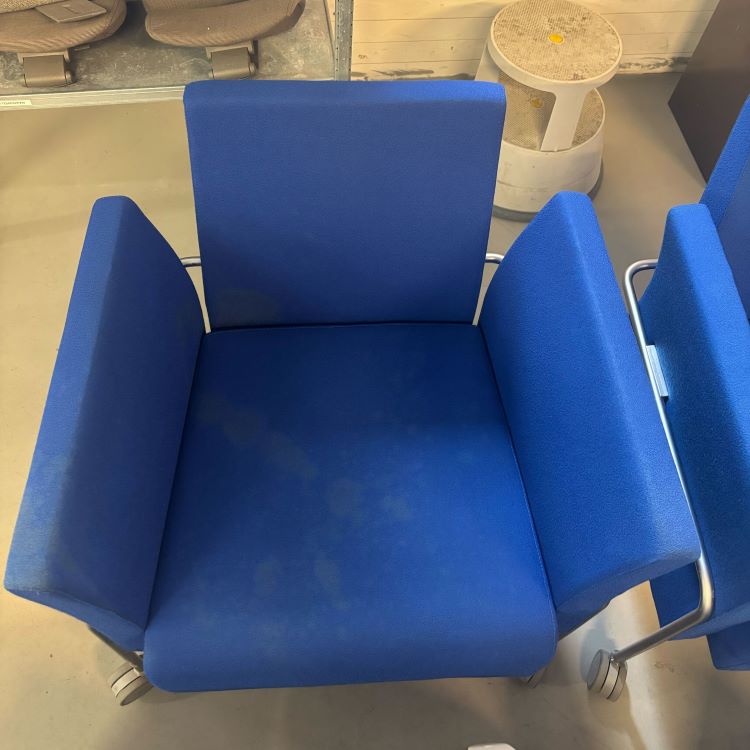 Fåtöljen Frendi från märket Martela är designat av Leena Palsanen. En stilren fåtölj i en färgstark djup blå kulör med ram i matt krom. Stolen har fyra låsbara hjul vilket gör den enkel att förflytta vid behov. Frendi är en fåtölj som signalerar glädje och piggar upp hela kontoret.