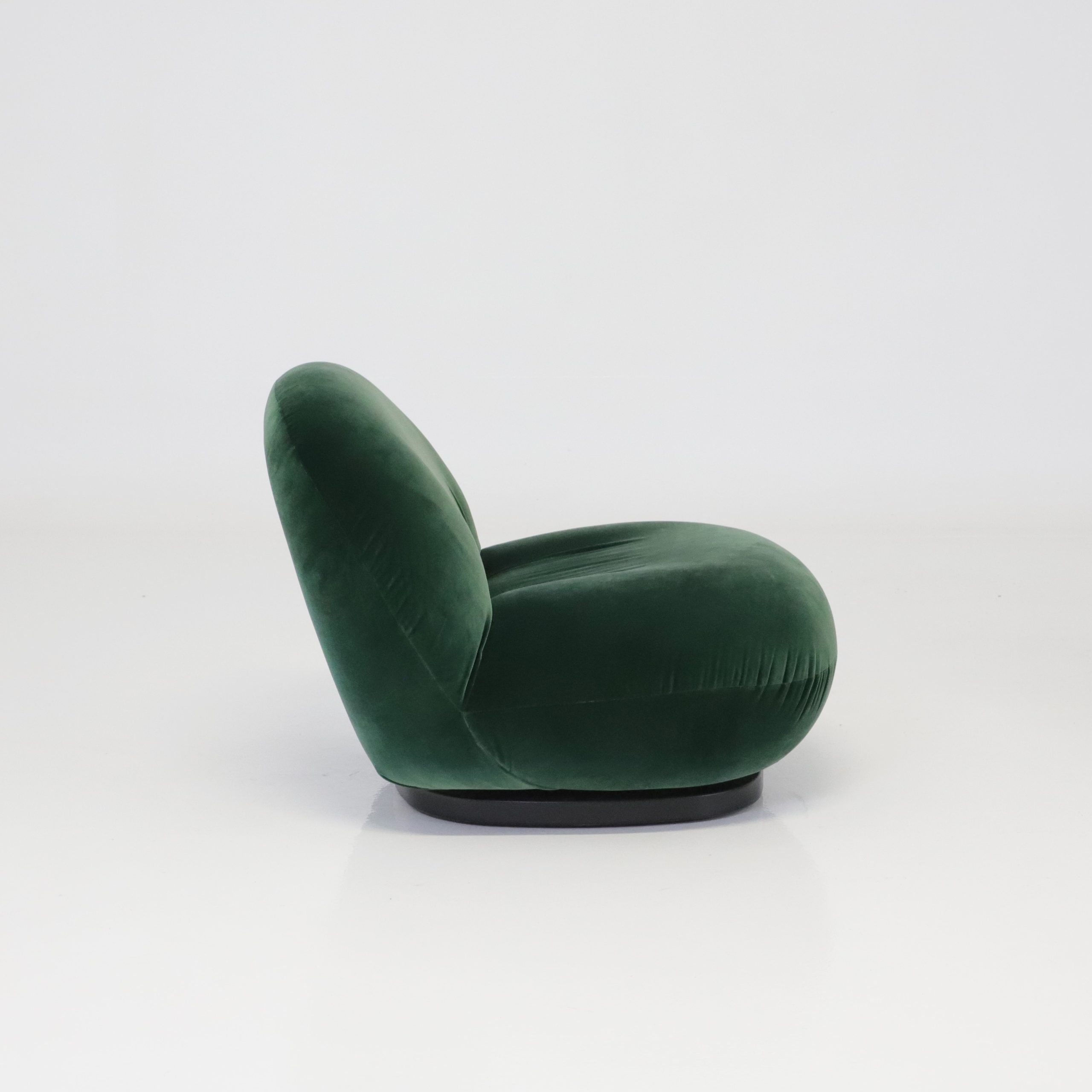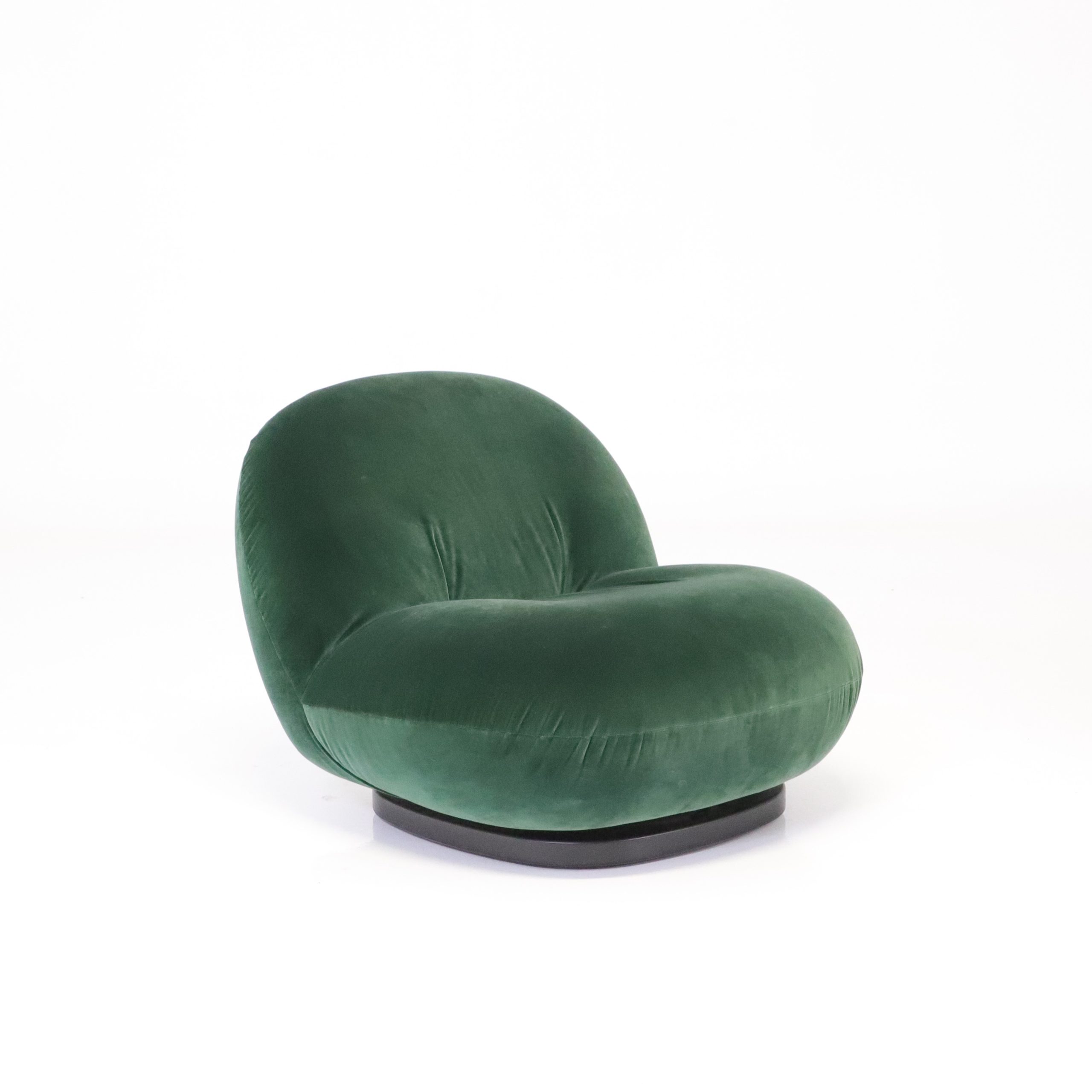 Fåtölj Pacha ifrån Gubi är en exklusiv designikon formgiven av Pierre Paulin 1975. Den låga, organiska formen och generösa stoppningen skapar en inbjudande känsla av molnlik komfort. Pacha är byggd för avslappning med perfekt balans mellan form och funktion. Den svävande siluetten, noggrant formade sömmar och möjlighet till vridbar bas gör den till en möbel som kombinerar skulptural design med oöverträffad komfort.
