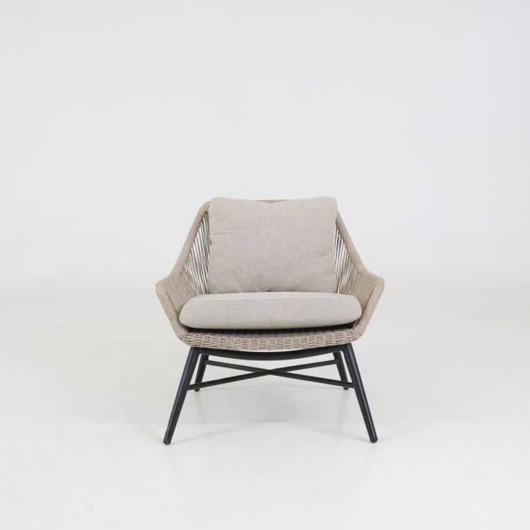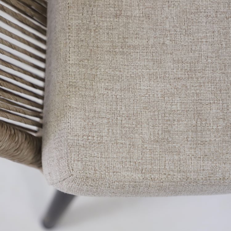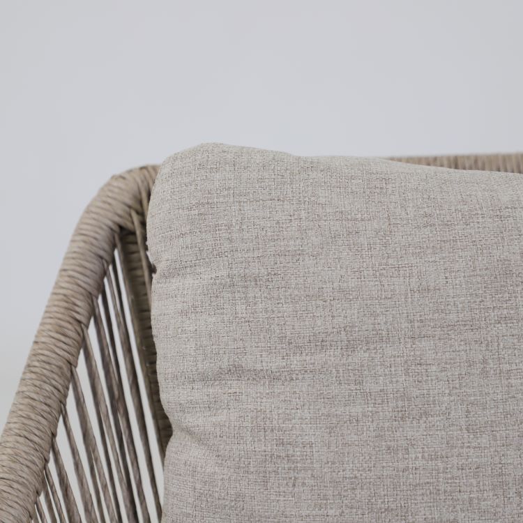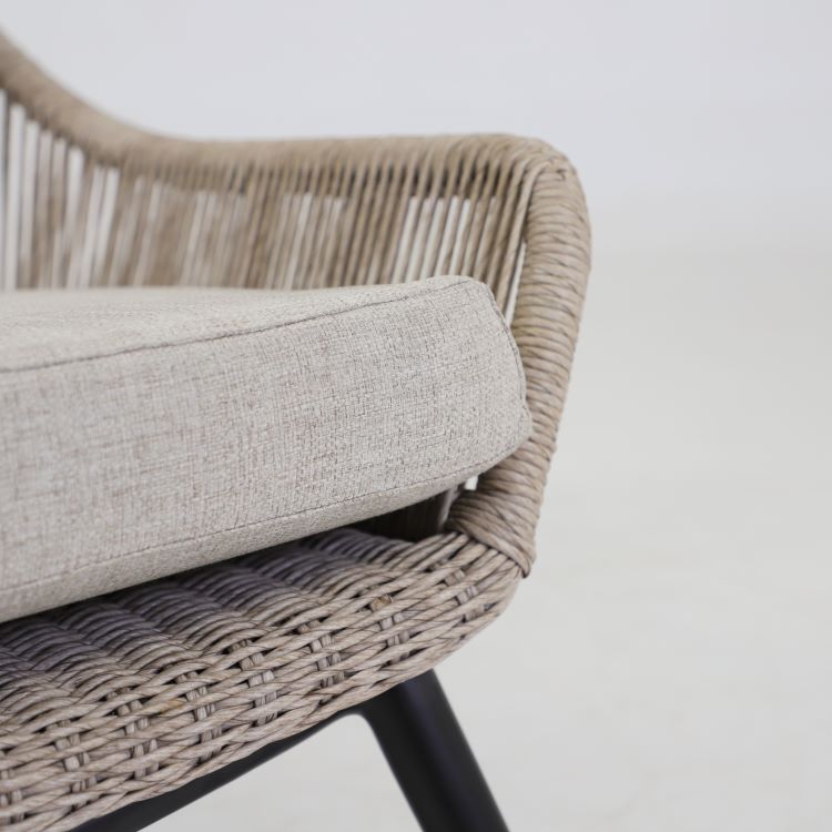 Fåtölj Pembroke är en stilren loungemöbel som kombinerar modern design med hög komfort för uteplats, altan eller trädgård. Serien kännetecknas av sina mjuka och rundade former samt den stilrena, twistade konstrottingen som ger möbeln ett exklusivt och inbjudande uttryck. Den stabila stommen i pulverlackerad aluminium gör möbeln både lätt och tålig, samtidigt som materialvalet gör den väderbeständig och enkel att underhålla. De generösa dynorna i slitstarkt olefintyg ger en bekväm sittupplevelse och är framtagna för att tåla utomhusbruk. Den harmoniska beige färgkombinationen skapar en lugn och naturlig känsla som passar i de flesta utemiljöer.