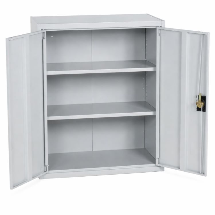 Med två inkluderade hyllplan som är justerbara i höjd kan du enkelt anpassa förvaringen efter behov, oavsett om det gäller pärmar eller kontorsmaterial. Det integrerade spanjolettlåset med tre låspunkter ger en trygg och säker förvaring av viktiga dokument och värdesaker.
