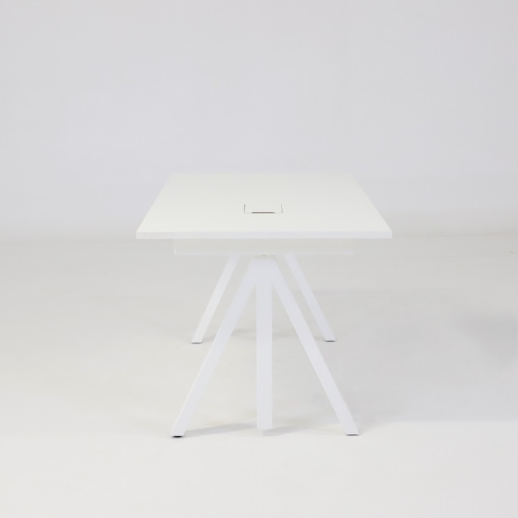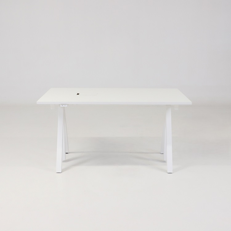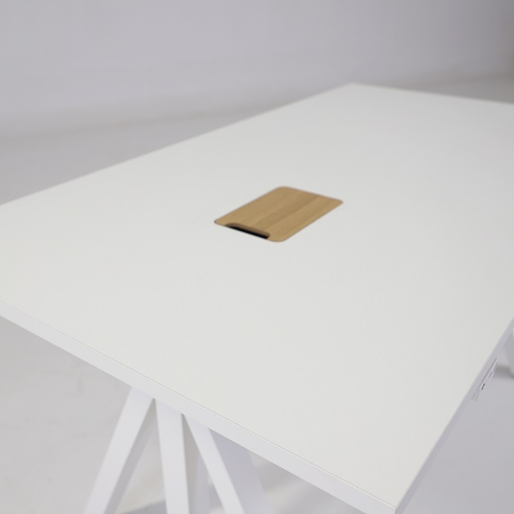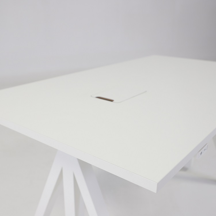 Höj- och sänkbart skrivbord Works från String Furniture | Vit bordsskiva i laminerad MDF och underrede i tåligt pulverlackerat stål av svenska String Furniture. String är kända för att tillverka möbler i tidlös skandinavisk stil där både design och funktionalitet får ta plats. Skrivbordet Works är ett bra exempel där varje detalj är välgenomtänkt så som den diskreta men praktiska kabelluckan på skrivbordets ovansida som gör att du enkelt kan hålla ordning och reda på din arbetsplats. Kabelluckan är vändbar och kan användas med två olika uttryck – en ren vit yta för en diskret helhet eller en stilig träfinish som tillför värme och designkänsla. Sortimentet från Works™ är designat av Anna von Schewen och Björn Dahlström.