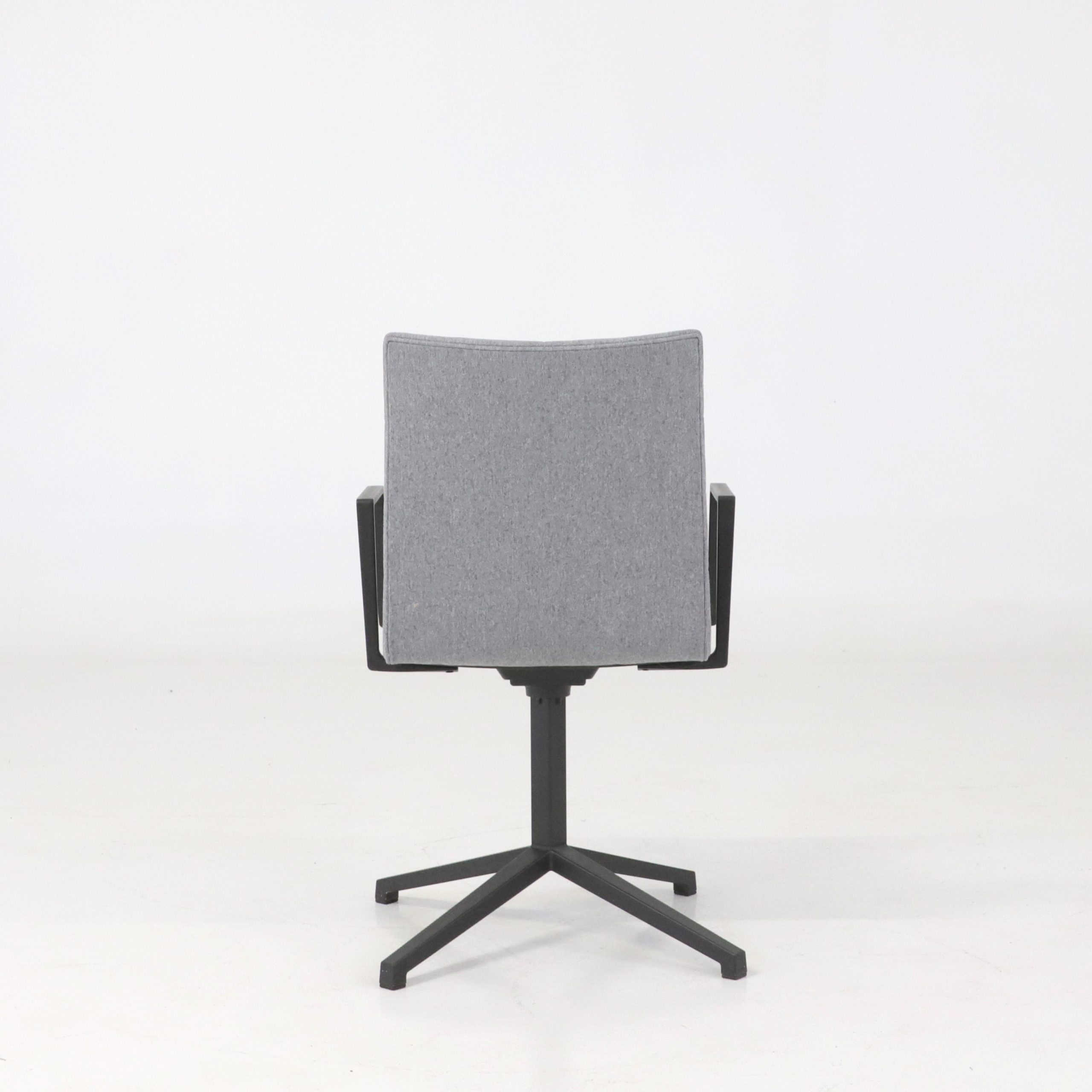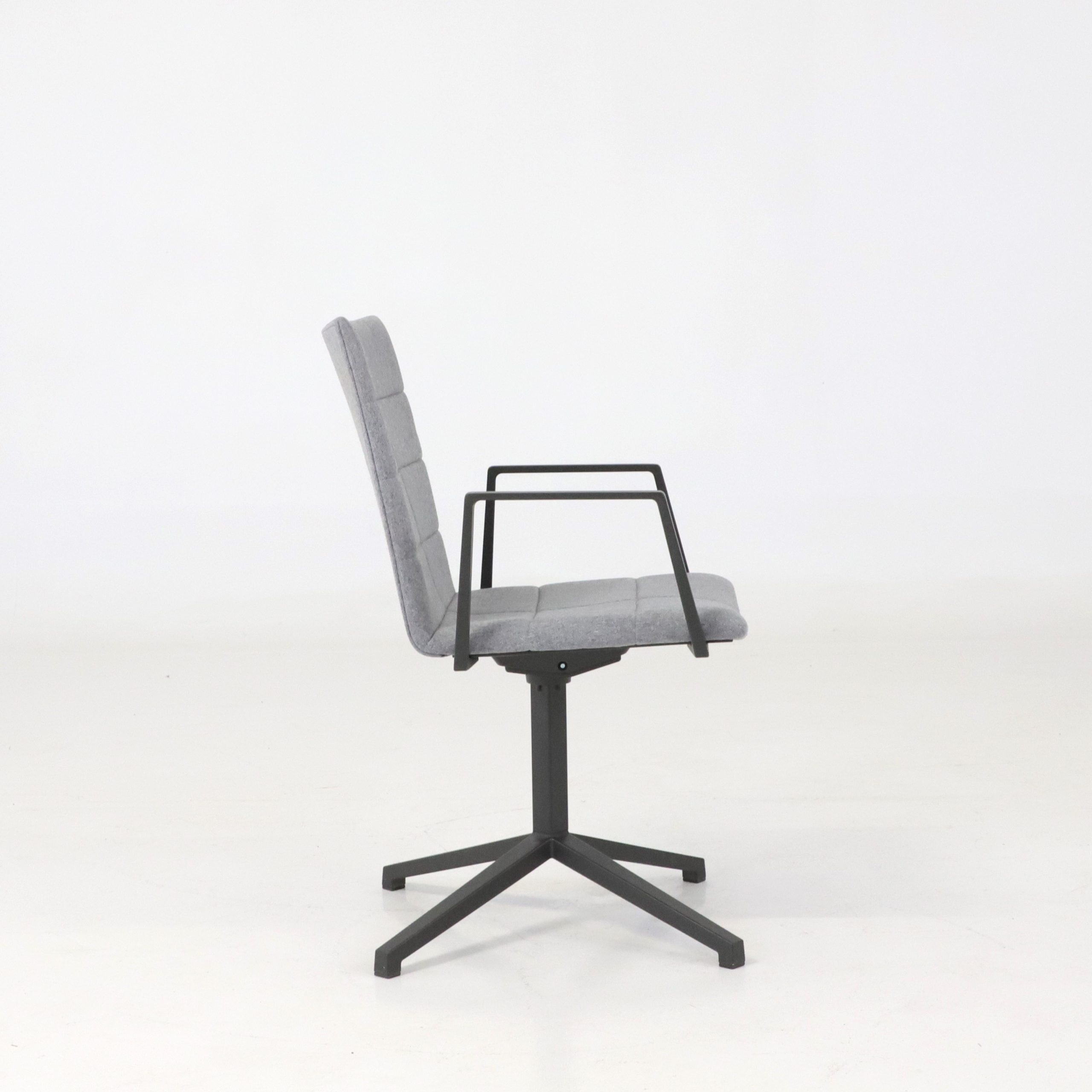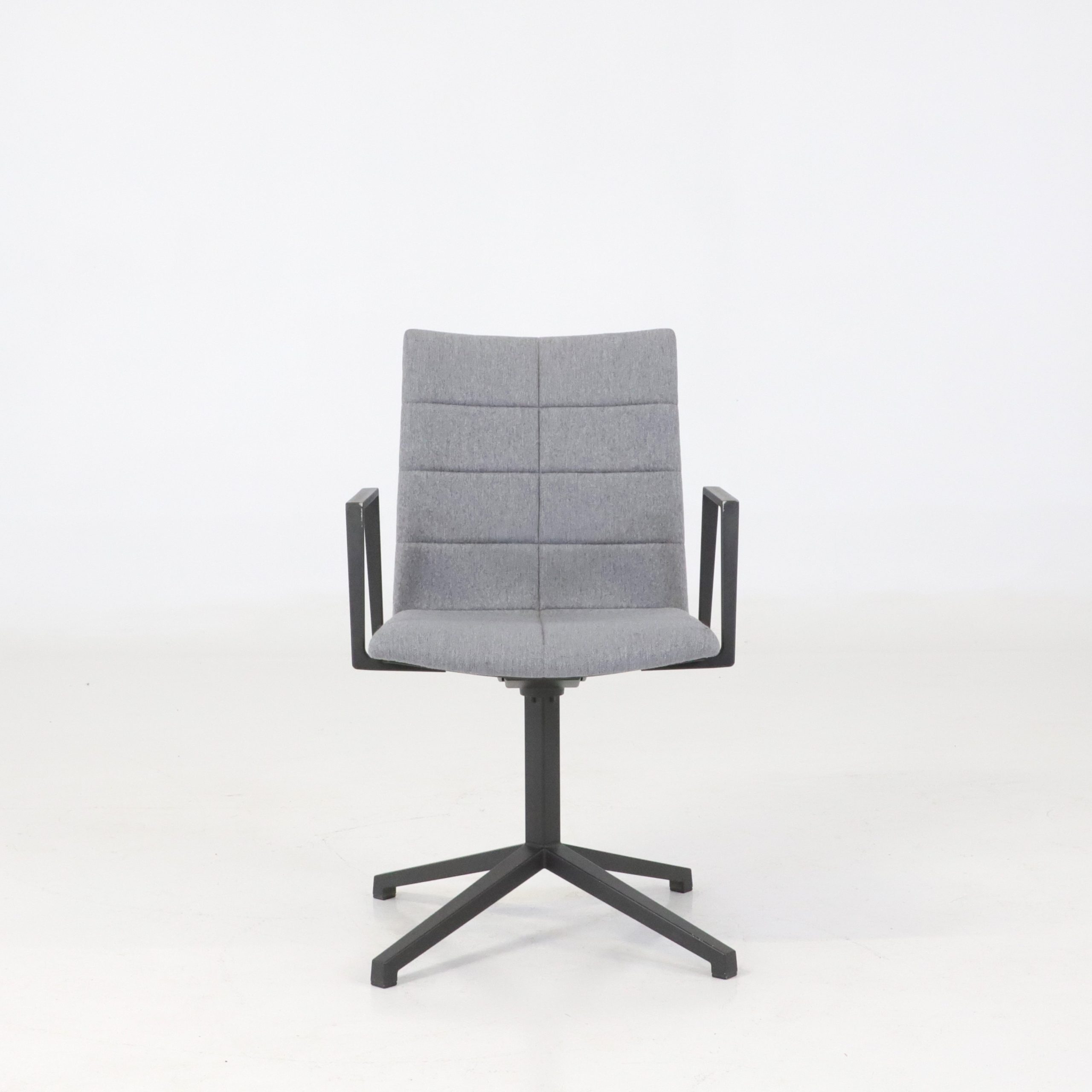 Kommer i två olika utföranden – roströd kulör på sitsen med kromat underrede eller grå kulör på sitsen med svart underrede och armstöd. Stolen är dessutom snurrbar vilket gör den till en bekväm konferensstol och ett mer dynamiskt och flexibelt arbetsflöde, särskilt i samarbetsintensiva miljöer.