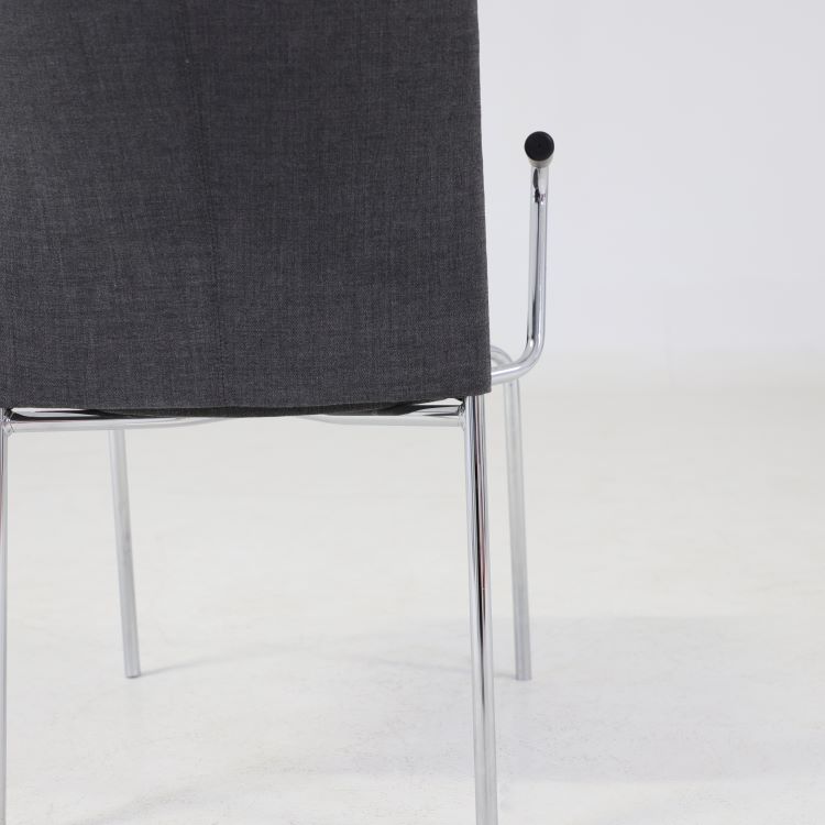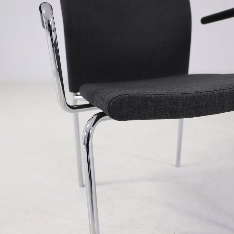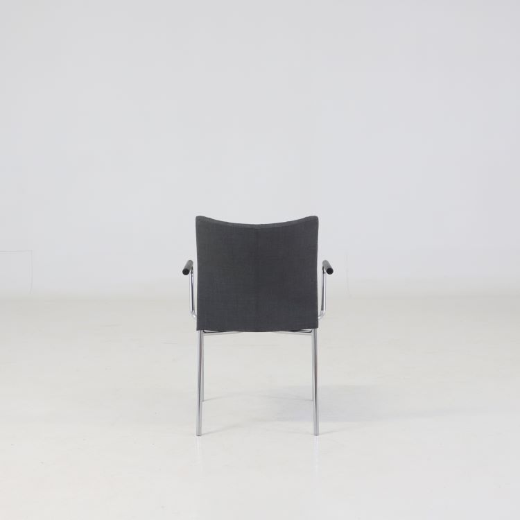 Underredet i kromad metall ger både stabilitet och ett lätt, modernt uttryck. Armstöden är försiktigt rundade för att både rama in sitsen och ge ett extra stöd för armarna, vilket ytterligare förstärker den ergonomiska utformningen. Tack vare sin balanserade kombination av design och funktion passar Roy-stolen lätt in i såväl klassiska som mer samtida inredningsmiljöer.