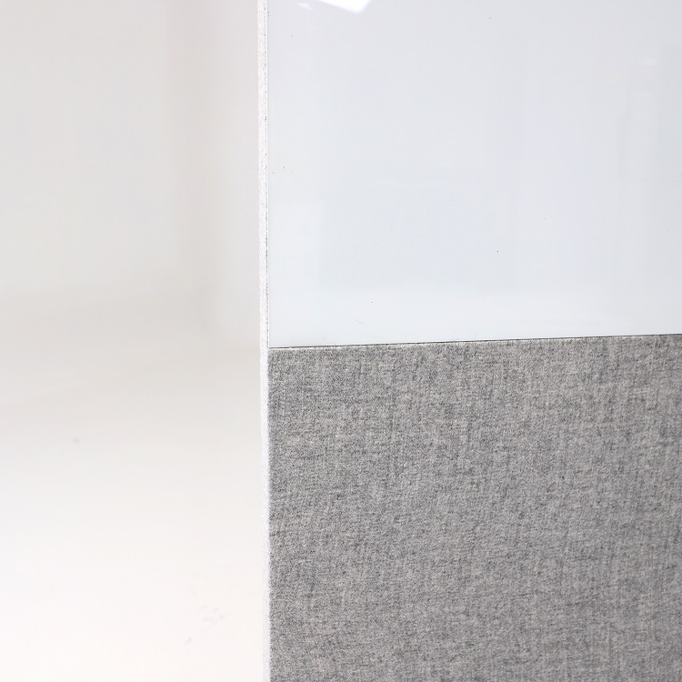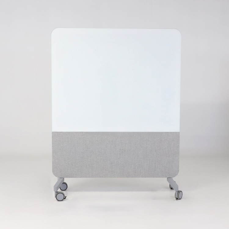 Whiteboard Mood Fabric Lintex | Designad av Matti Klenell och Halleroed | Mobil golvskärm med dubbla funktioner där ena sidan består av en skrivtavla i glas och den andra av en ljudabsorberande, tygklädd yta med ljudabsorberande fyllning. Den kombinerar akustik och skrivmöjlighet i en och samma enhet och passar perfekt i kontor, mötesrum och öppna miljöer där flexibilitet och ljudkomfort är viktigt. Skärmen är lätt att flytta tack vare hjulförsedda ben och kan användas som rumsavdelare, anteckningstavla eller avskärmning vid tillfälliga arbetsplatser. Den tygklädda sidan förbättrar rummets akustik och bidrar till en varm och inbjudande atmosfär, medan glasskrivytan erbjuder en slitstark och magnetisk yta för planering och idéarbete.